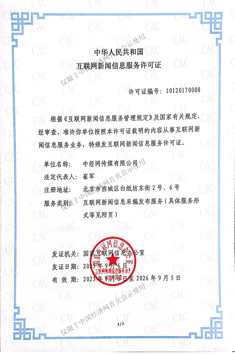中國(guó)經(jīng)濟(jì)網(wǎng)《互聯(lián)網(wǎng)新聞信息服務(wù)許可證》公示