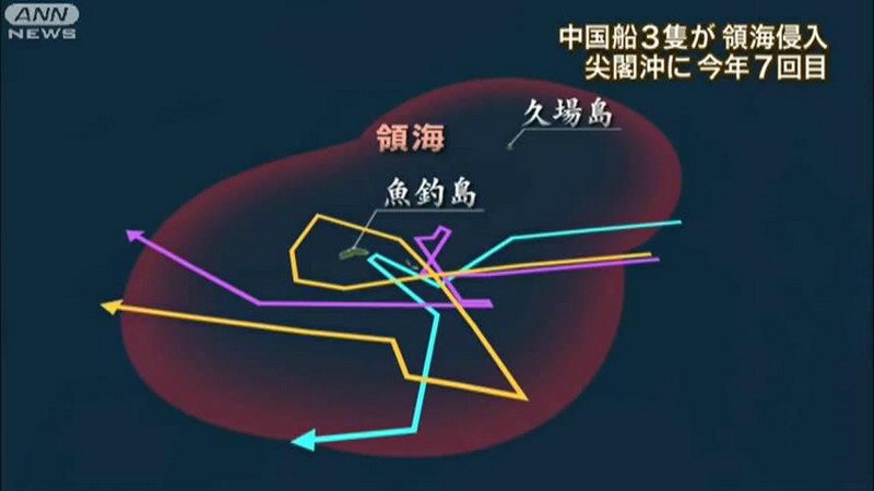 報(bào)道稱, 18日上午8時(shí)54分至9時(shí)17分,中國3艘海監(jiān)船相繼進(jìn)入釣魚島附近的“日本領(lǐng)海”,日本海上保安廳巡邏船立即發(fā)出警告。中國“海監(jiān)50”則通過無線電用中文和英語回答稱,釣魚島及其附屬島嶼是中國領(lǐng)土。共同社稱,3艘中國船環(huán)繞釣魚島航行約5小時(shí),“海監(jiān)50”最近時(shí)僅距島約1公里。