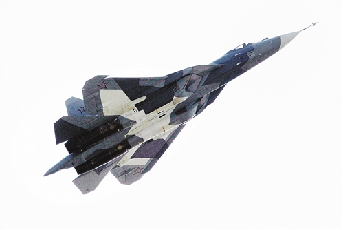 俄羅斯新一代戰(zhàn)機(jī)T-50在第十屆俄羅斯國際航空航天展覽會上表演。 新華社發(fā)
