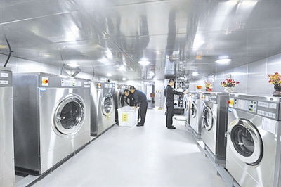 負(fù)責(zé)全體艦員衣物的洗滌、烘干、熨燙,所有送洗衣物上都統(tǒng)一掛上姓名標(biāo)簽,艦員只需將待洗衣物裝進(jìn)洗衣袋內(nèi),送至洗衣房,過半天時間自取即可。