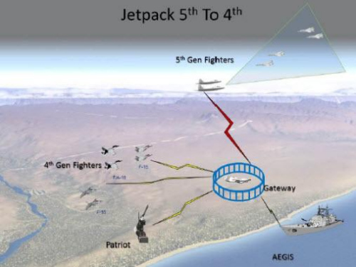 由于F-22的最終生產(chǎn)數(shù)量遠(yuǎn)低于當(dāng)年的預(yù)期,并且美國空軍傳統(tǒng)戰(zhàn)斗機(jī)的服役時(shí)間也將遠(yuǎn)長于當(dāng)年的預(yù)期,F(xiàn)-22與傳統(tǒng)戰(zhàn)斗機(jī)難以有效互連互通的局面必須改變。為此,美國空軍成為美國國防部發(fā)起的一項(xiàng)聯(lián)合能力技術(shù)演示驗(yàn)證(JCTD)項(xiàng)目的參與者之一。該項(xiàng)目被稱為“聯(lián)合攻擊戰(zhàn)斗機(jī)一體化終端”(Joint Strike Fighter Enterprise Terminal,JETPack),旨在對可解決這一問題的、具有適當(dāng)成熟度和可生產(chǎn)性的技術(shù)進(jìn)行演示驗(yàn)證。漢米爾頓透露,如果資金到位,那么基本型JETPack設(shè)備有望在今年年底之前在替代飛機(jī)上開始試飛。他還表示:該項(xiàng)目的實(shí)施周期為24個(gè)月,現(xiàn)已進(jìn)行了18個(gè)月,已接近完成;基本型JETPack設(shè)備包括若干天線、一個(gè)終端和安裝在網(wǎng)關(guān)平臺上的“遠(yuǎn)端電子設(shè)備”(remote electronics);項(xiàng)目面臨的主要挑戰(zhàn)是為網(wǎng)關(guān)開發(fā)天線系統(tǒng),并避免系統(tǒng)內(nèi)部的電磁干擾。漢米爾頓還說,考慮到在反介入/區(qū)域拒止環(huán)境中作戰(zhàn)的需要,該項(xiàng)目得以加速。