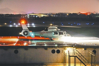 中國(guó)某艦載機(jī)部隊(duì)直升機(jī)模擬夜間海上著艦