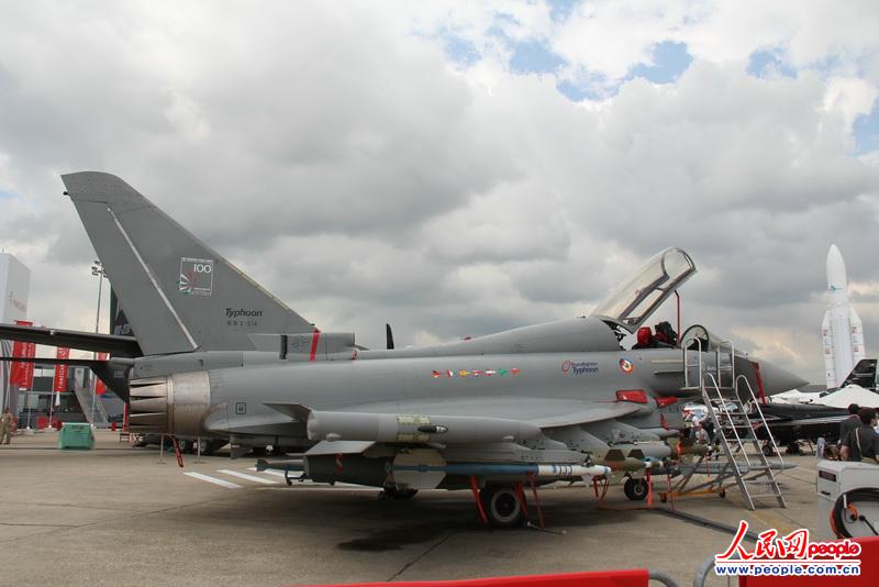 第50屆法國(guó)巴黎航展17日-23日在巴黎郊區(qū)的布爾歇機(jī)場(chǎng)開(kāi)幕,眾多國(guó)際知名的新型軍民用飛機(jī)匯聚巴黎。圖為歐洲“臺(tái)風(fēng)”戰(zhàn)斗機(jī)靜態(tài)展示。(李志偉 攝影)