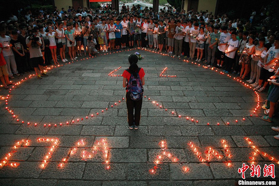 7月8日,市民在江山市須江公園內(nèi)為韓亞空難遇難中國女生默哀祈福。7日凌晨,在美國舊金山國際機(jī)場著陸時(shí)失事的韓亞航空公司波音777型客機(jī)已經(jīng)造成至少2人死亡,韓亞航空向浙江江山市政府發(fā)去傳真,稱根據(jù)登機(jī)牌,參加江山中學(xué)赴美夏令營的兩名女生王琳佳和葉夢圓在此次空難中不幸罹難。中新社發(fā) 李晨韻 攝