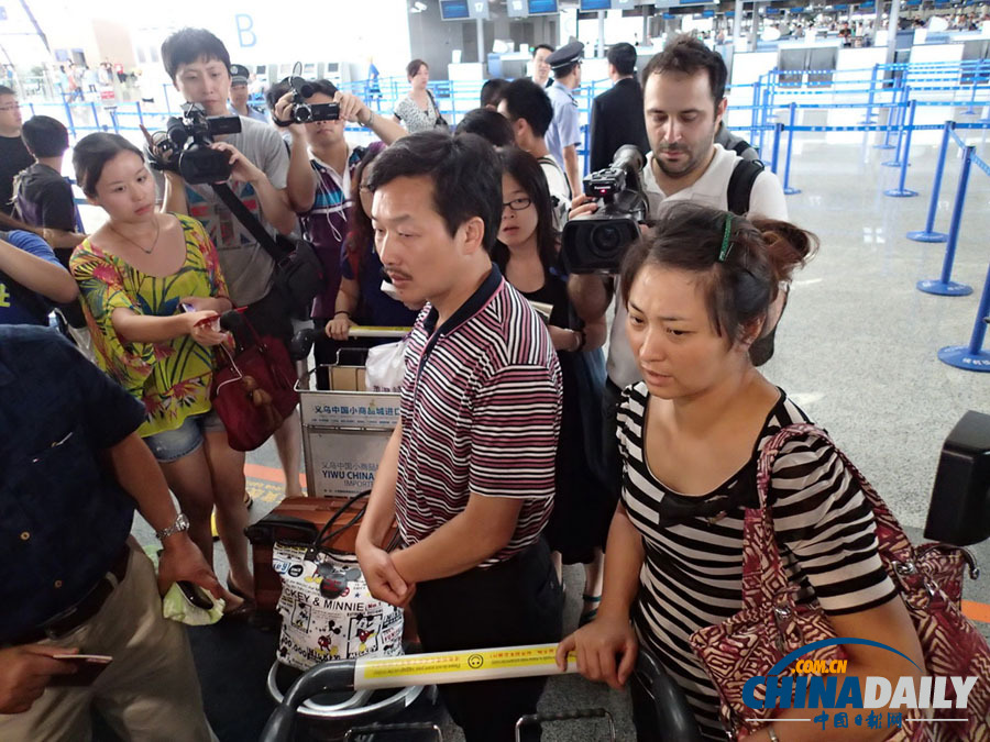 2013年7月8日,韓亞空難遇難者家屬?gòu)纳虾3霭l(fā)赴美料理后事。