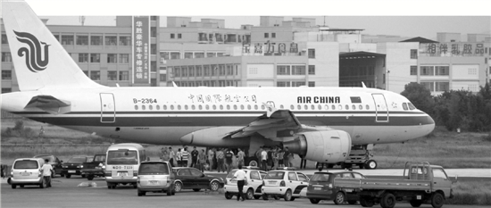 “當(dāng)時來了很多工作人員,廣播說,因為飛機輪胎陷進(jìn)跑道,為了減輕飛機的重量,要求所有乘客下飛機!毕聶C后,王小姐看了看,發(fā)現(xiàn)飛機的一只輪胎陷進(jìn)了瀝青路面,輪胎并沒有爆裂。