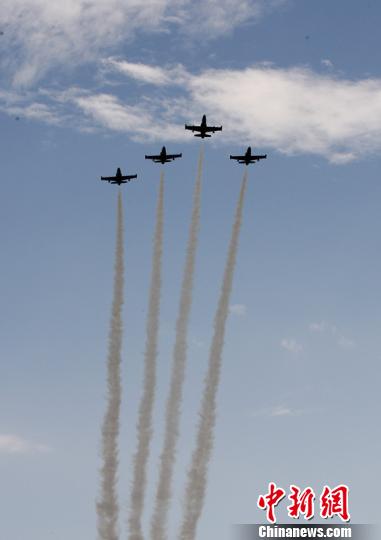 8月14日, 國際著名飛行表演隊——百年靈噴氣機表演隊正在克拉瑪依機場做暫短展示表演!≈芙帷z