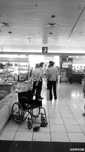 與此同時在微博上也有其他在現(xiàn)場的網(wǎng)友發(fā)微博稱:“一隊去南京的旅客,由于里面許多殘疾人帶拐杖,機組出于安全考慮不同意登機,現(xiàn)場比較混亂。有沒有相關(guān)規(guī)定,安檢能過但不能登機,問題出在哪兒呢? ”
