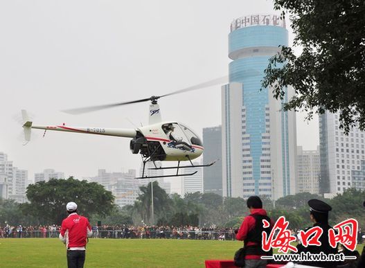 12月17日,2011中國首屆環(huán)海南島飛行拉力賽在?谂e行;顒(dòng)現(xiàn)場(chǎng)規(guī)模空前,扣人心弦,精彩紛呈。據(jù)悉,本次飛行拉力賽至本月30日止。圖為直升機(jī)定位“投籃”賽現(xiàn)場(chǎng)