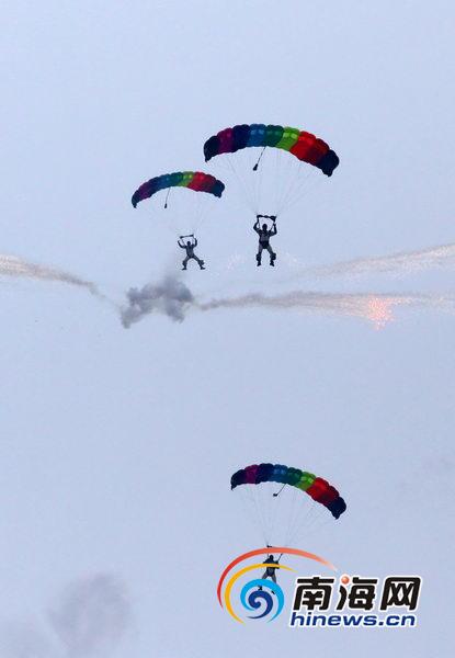 跳傘隊員們從天而降(南海網(wǎng)記者張茂攝)
