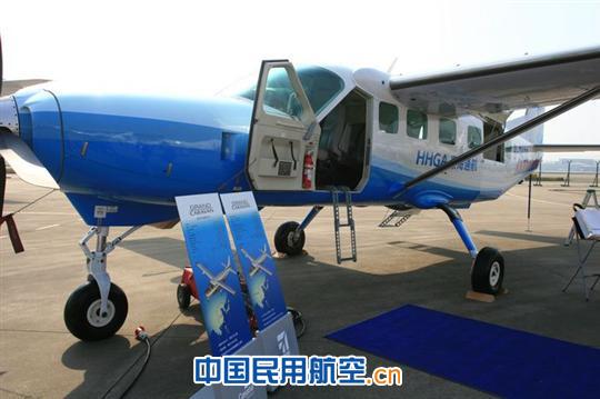 3月27日,為期三天的2012亞洲公務(wù)航空會(huì)議及展覽會(huì)(ABACE2012)在新落成的上;艨颂窖蠊珓(wù)航空中心開(kāi)幕。圖為豪海通航攜賽斯納飛機(jī)亮相上海ABACE2012。攝影:安利國(guó)