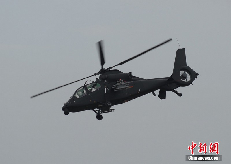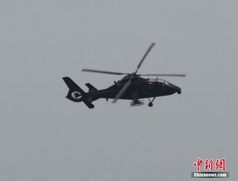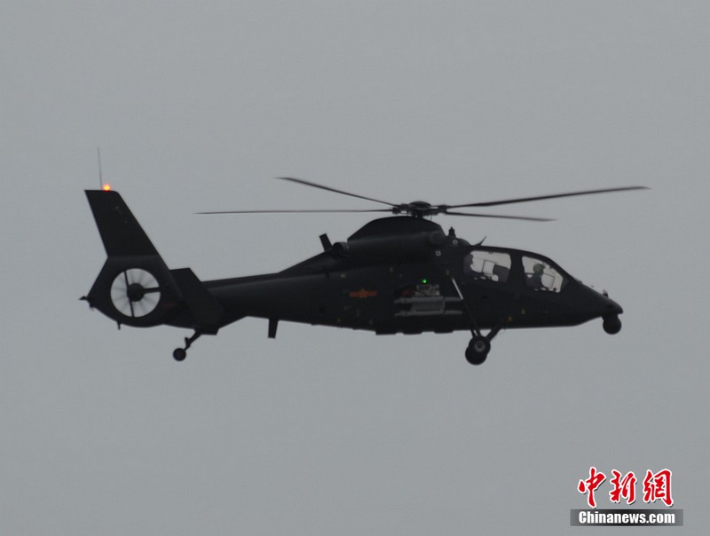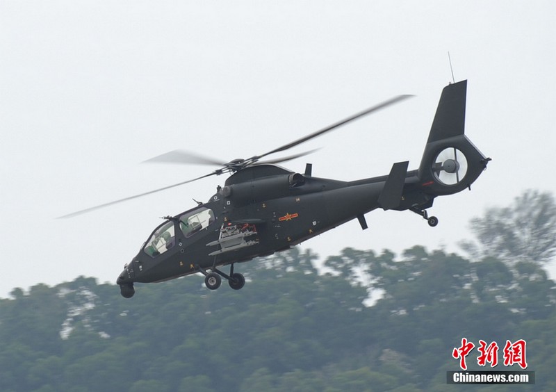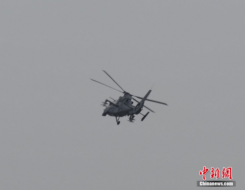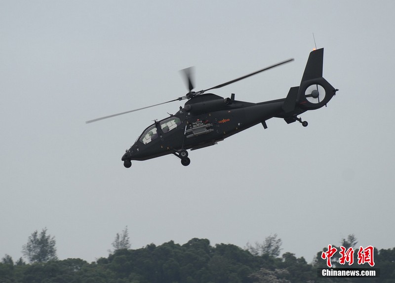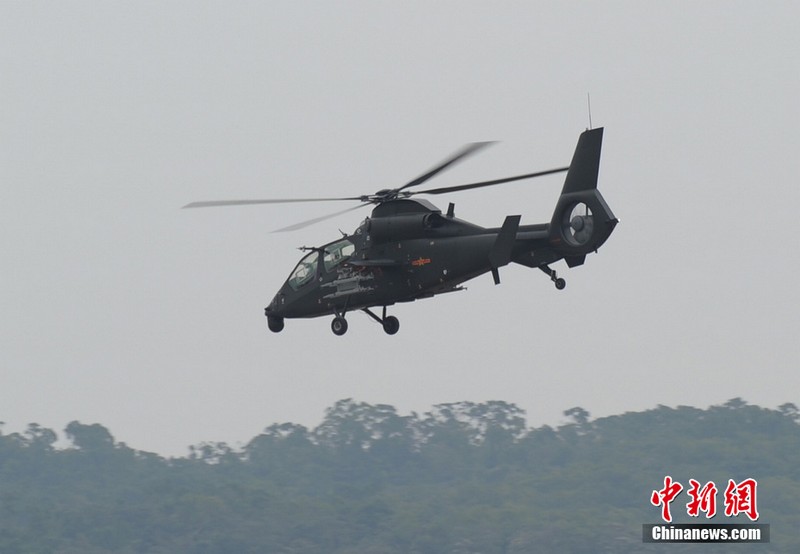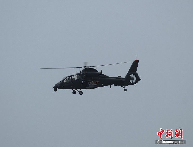 中新網(wǎng)珠海11月11日電(陳海峰) 中國陸航直19武裝直升機(jī)11日在珠海航展上空進(jìn)行了精彩的飛行表演。