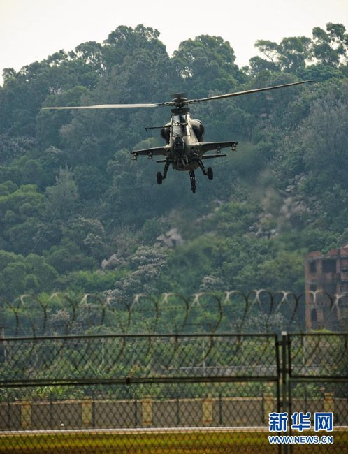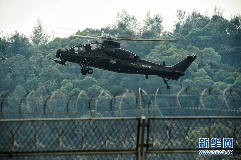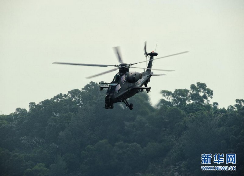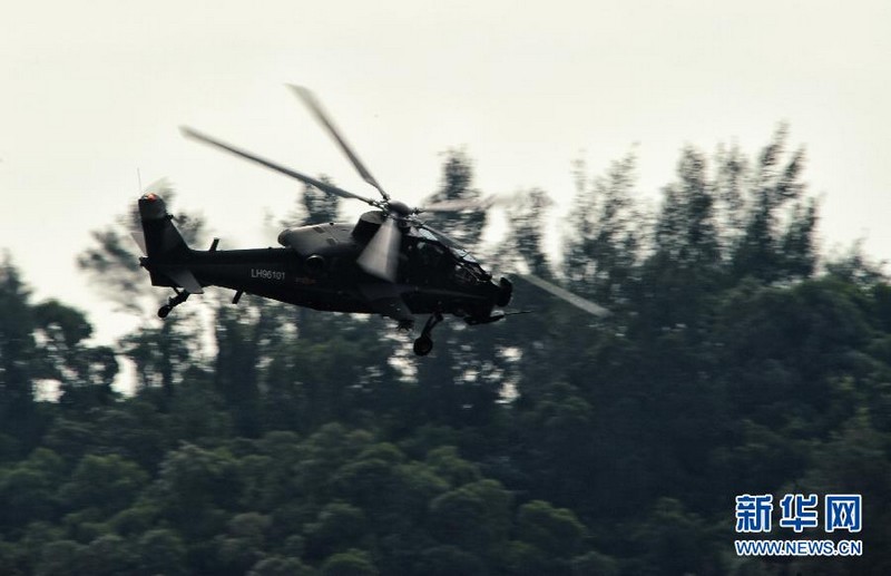 2012年11月11日,國產(chǎn)武直10武裝直升機在珠海三灶機場進(jìn)行飛行訓(xùn)練。當(dāng)日,我國自主研制生產(chǎn)的武直10武裝直升機在珠海三灶機場進(jìn)行了約20分鐘的適應(yīng)性飛行訓(xùn)練,做出倒飛、萊維斯曼機動、高速大角度俯沖、低空小半徑盤旋等動作,展現(xiàn)出其優(yōu)異性能,引來航展現(xiàn)場觀眾頻頻喝彩。楊光 攝 圖片來源:新華網(wǎng)