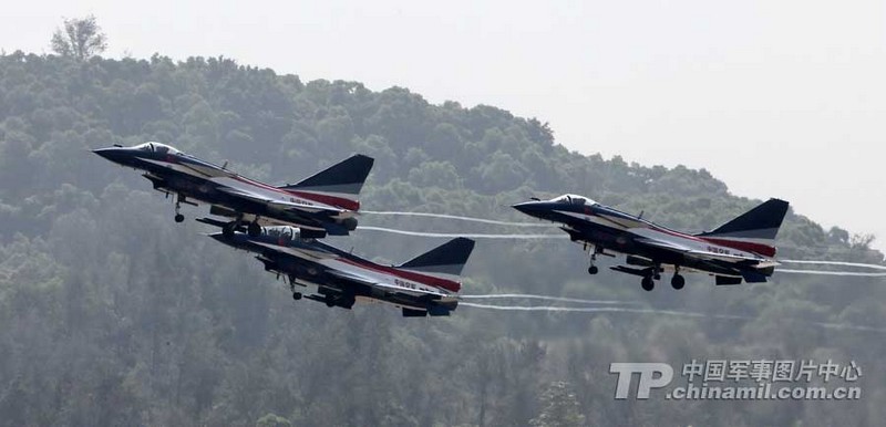 第9屆中國航空航天博覽會(huì)開幕在即。中國人民解放軍空軍八一飛行表演隊(duì)已到達(dá)珠海機(jī)場。 11月10日,珠海機(jī)場多云,八一飛行表演隊(duì)的飛行健兒進(jìn)行了“熱身訓(xùn)練”。記者在現(xiàn)場記錄了他們駕駛殲10戰(zhàn)機(jī)在云中穿梭的情景。親眼見證 “三機(jī)箭隊(duì)起飛”、“4機(jī)菱形隊(duì)斤頭”、“5、6號(hào)機(jī)繞軸滾轉(zhuǎn)”、“4機(jī)菱形放起落架斜盤旋”、“4機(jī)疊羅漢”等新增的高難度動(dòng)作的風(fēng)采。(來源:中國軍網(wǎng))