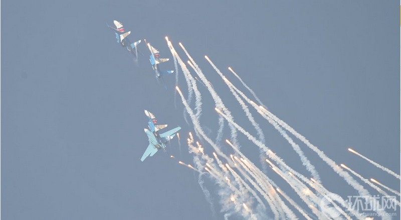 【環(huán)球網(wǎng)赴珠海航展特派報道組綜合報道】第九屆中國國際航空航天博覽會(珠海航展2012)將于11月13日-18日在廣東省珠海市金灣區(qū)三灶鎮(zhèn)隆重舉行。12日,“俄羅斯勇士”飛行表演隊舉行了本屆珠海航展正式開幕前的預演。