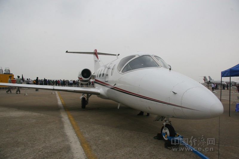 中國經(jīng)濟(jì)網(wǎng)珠海航展報道團(tuán)記者王飛報道 在2012珠海航展上靜態(tài)展示的華彬亞盛通用航空展出的空中救護(hù)車,機(jī)型為Beechjet 400A。