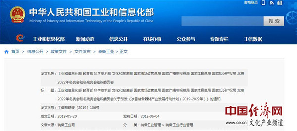 關(guān)于印發(fā)《冰雪裝備器材產(chǎn)業(yè)發(fā)展行動計劃(2019-2022年)》的通知