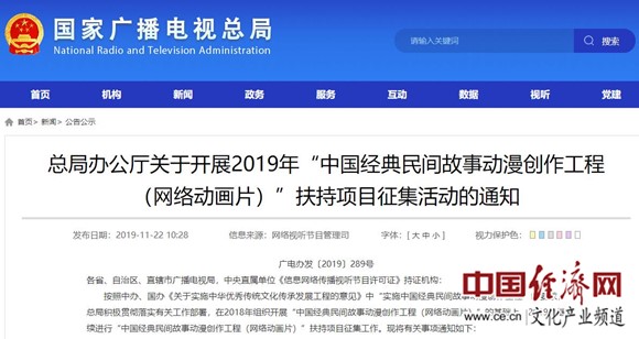 總局辦公廳關(guān)于開展2019年“中國經(jīng)典民間故事動(dòng)漫創(chuàng)作工程(網(wǎng)絡(luò)動(dòng)畫片)”扶持項(xiàng)目征集活動(dòng)的通知