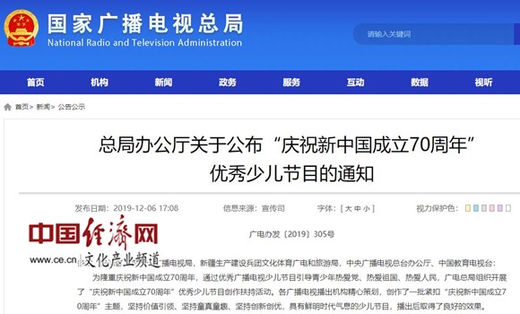 廣電總局公布36個慶祝新中國成立70周年優(yōu)秀少兒節(jié)目