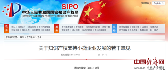 中國經(jīng)濟(jì)網(wǎng)北京10月14日訊 中國經(jīng)濟(jì)網(wǎng)文化產(chǎn)業(yè)頻道記者從國家知識產(chǎn)權(quán)局網(wǎng)站獲悉,國家知識產(chǎn)權(quán)局近日印發(fā)了《關(guān)于知識產(chǎn)權(quán)支持小微企業(yè)發(fā)展的若干意見》(以下簡稱《意見》)。據(jù)中國經(jīng)濟(jì)網(wǎng)文化產(chǎn)業(yè)頻道記者了解,該《意見》從扶持小微企業(yè)創(chuàng)新發(fā)展、完善小微企業(yè)知識產(chǎn)權(quán)服務(wù)、提高小微企業(yè)知識產(chǎn)權(quán)運(yùn)用能力、優(yōu)化小微企業(yè)知識產(chǎn)權(quán)發(fā)展環(huán)境4個方面,提出了支持小微企業(yè)創(chuàng)新成果在國內(nèi)外及時(shí)獲權(quán)、完善小微企業(yè)專利資助政策、扶持知識產(chǎn)權(quán)服務(wù)業(yè)小微企業(yè)等15條具體措施。