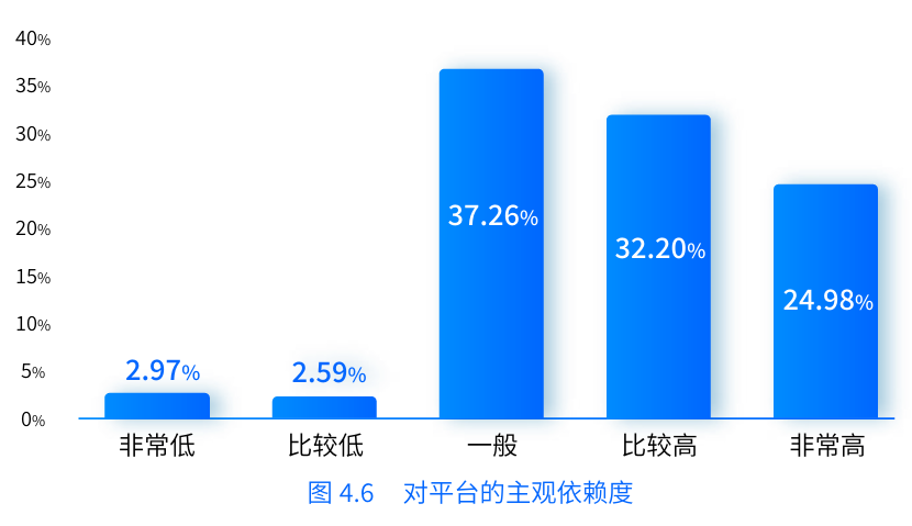 “我們在調(diào)研中發(fā)現(xiàn),貨車司機對使用數(shù)字貨運平臺的主觀依賴度還是很高的?!敝袊嗣翊髮W(xué)中國就業(yè)與民生研究院執(zhí)行副院長周廣肅說。報告中指出,主觀認為自己對平臺的依賴程度較高和非常高的司機占全體調(diào)查司機的57.18 %,超過了總數(shù)的一半。