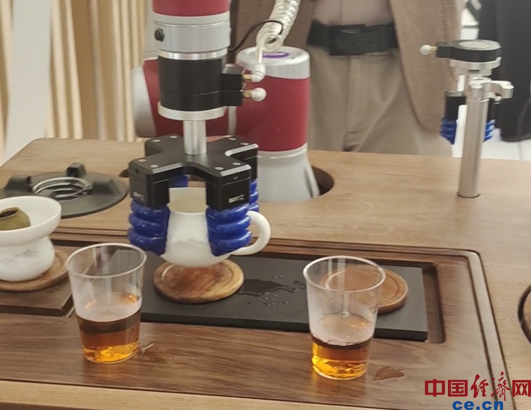 茶藝機(jī)器人可模擬煮茶大師手法,提供便捷、地道的用茶體驗(yàn)。中國(guó)經(jīng)濟(jì)網(wǎng)記者 朱曉倩/攝