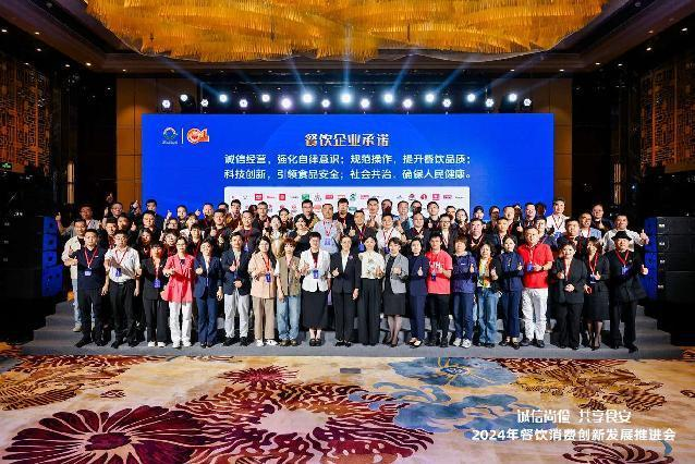 圖為“2024年餐飲消費創(chuàng)新發(fā)展推進會”餐飲企業(yè)共同發(fā)出承諾