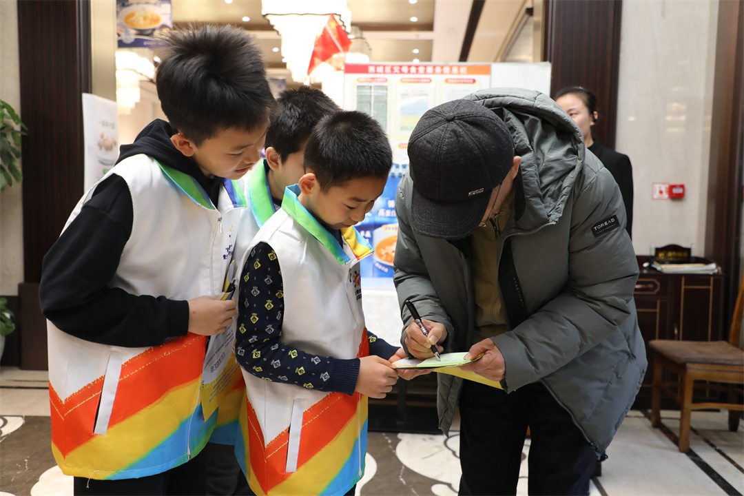 志愿者們還學(xué)以致用,化身“制止餐飲浪費(fèi)宣傳員”,向餐廳中的食客宣傳節(jié)糧反浪費(fèi)知識(shí),發(fā)放節(jié)糧知識(shí)宣傳單,并邀請(qǐng)食客寫下自己節(jié)約糧食和避免浪費(fèi)的心得。在店食客積極參與留言并對(duì)小志愿者的宣講表示認(rèn)同。