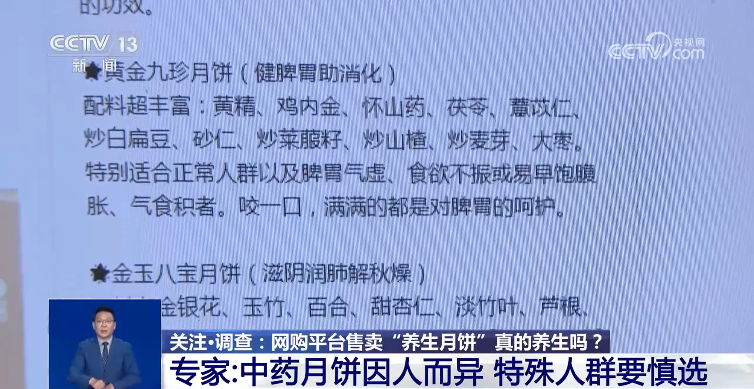 商家口中的"養(yǎng)生月餅"號稱是添加了中藥材,名稱也是五花八門,但這些所謂“養(yǎng)生月餅”真的有宣傳的那般神奇功效嗎?一起來聽專家怎么說?