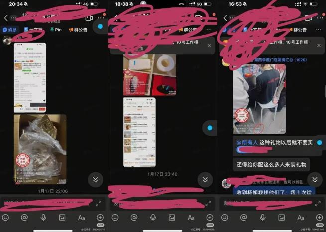 蔣小姐購(gòu)買(mǎi)禮品后在門(mén)店工作群的溝通記錄