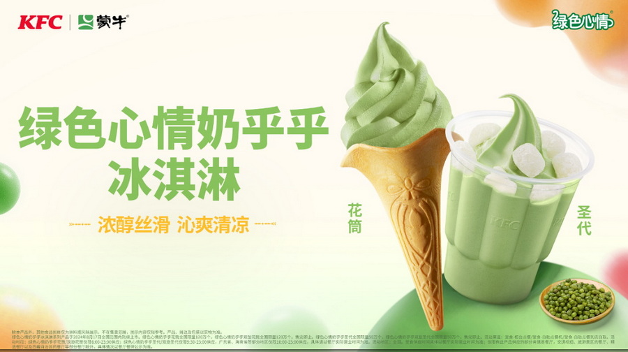 隨變聯(lián)合肯德基打造九珍果汁脆皮冰淇淋,粉巧脆皮搭配九珍果汁軟芯,清甜微酸,一口入夏。作為二十年的經(jīng)典品牌,綠色心情與肯德基攜手聯(lián)名“綠色心情奶乎乎冰淇淋”,已在全國萬余家線下肯德基門店上市,綠豆風(fēng)味冰淇淋奶香濃郁,絲滑沁爽,為夏日帶來一抹特別的綠色清涼。