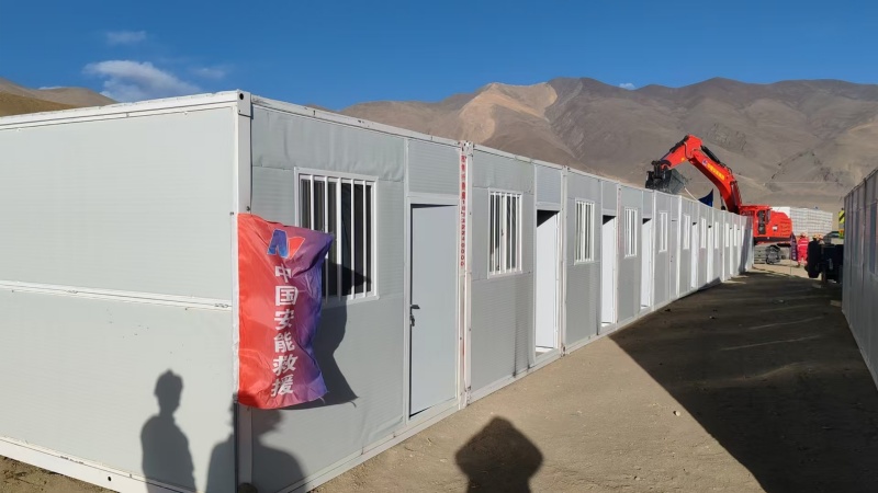 一排排活動板房已初步搭設(shè)完畢。與臨時搭建的帳篷相比,這些板房保暖效果更好。目前,板房內(nèi)設(shè)備正在逐漸完善,將盡快安排受災(zāi)群眾入住。 中國安能供圖