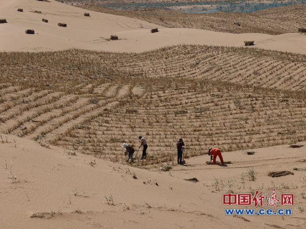 中衛(wèi)騰格里沙漠腹地治沙現(xiàn)場(chǎng) 中國(guó)經(jīng)濟(jì)網(wǎng)記者裴小閣/攝