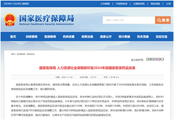 2024年醫(yī)保目錄調(diào)整從7月1日正式啟動(dòng),是國家醫(yī)保局成立以來的第7次國家醫(yī)保藥品目錄調(diào)整,將于2025年1月1日起實(shí)施。發(fā)布會(huì)上,國家醫(yī)保局醫(yī)藥服務(wù)管理司司長黃心宇介紹,今年目錄調(diào)整范圍以新藥為主,新增的91種藥品中有90種為5年內(nèi)新上市品種。國家醫(yī)保局將包括1類化藥、1類治療用生物制品、1類和3類中成藥在內(nèi)的“全球新”作為重點(diǎn)支持對(duì)象,確?!昂娩撚迷诘度猩稀薄?/p>