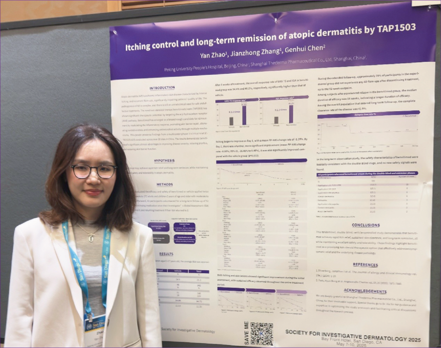 2025年第82屆美國皮膚病研究學(xué)會年會(SID)于5月7日至10日在美國圣地亞哥舉行,來自北京大學(xué)人民醫(yī)院趙琰教授關(guān)于澤立美本維莫德乳膏治療特應(yīng)性皮炎的確證性臨床研究數(shù)據(jù)重磅亮相本次年會。這是首個且唯一針對中國人群的研究,展示了澤立美本維莫德乳膏在速效止癢、療效持久及安全性方面的顯著優(yōu)勢。
