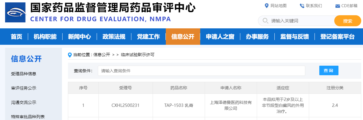 近日,由上海澤德曼醫(yī)藥科技有限公司自主研發(fā)的外用芳香烴受體(AhR)調(diào)節(jié)劑藥品正式獲得國(guó)家藥品監(jiān)督管理局藥品審評(píng)中心(CDE)批準(zhǔn),即將開展治療白癜風(fēng)的確證性臨床試驗(yàn)。這一突破標(biāo)志著我國(guó)甚至世界范圍內(nèi)在皮膚疾病創(chuàng)新藥物研發(fā)領(lǐng)域邁出重要一步。
