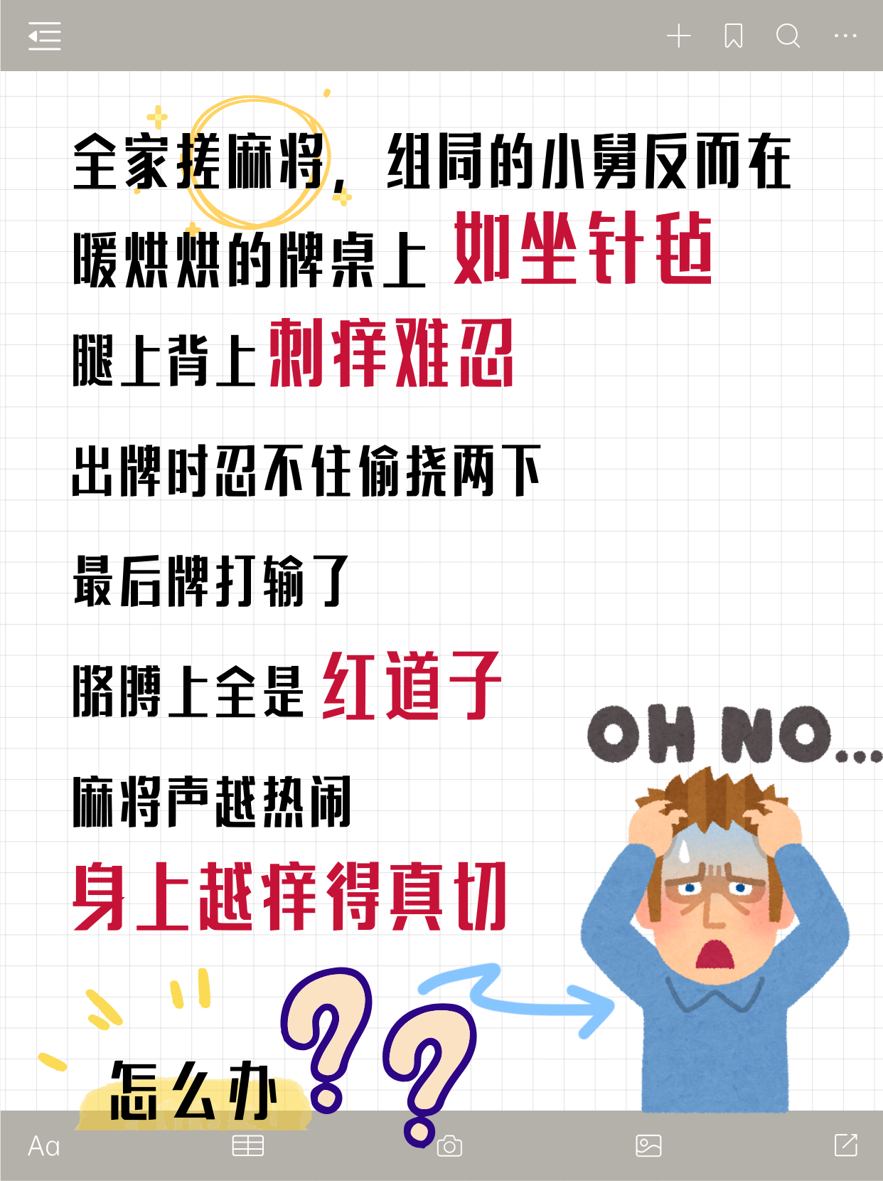 腿上背上刺癢難忍,出牌時忍不住偷撓兩下,