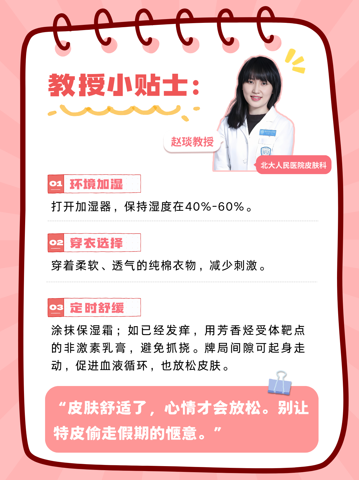 “皮膚舒適了,心情才會放松。別讓特皮偷走假期的愜意?!?/p>