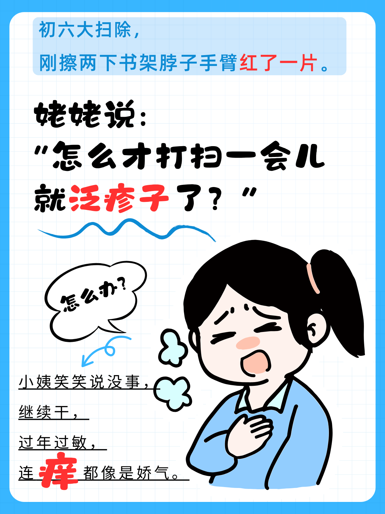姥姥說:“怎么才打掃一會兒就泛疹子了?”