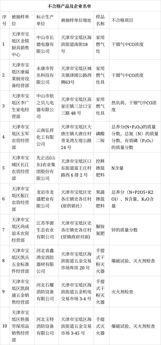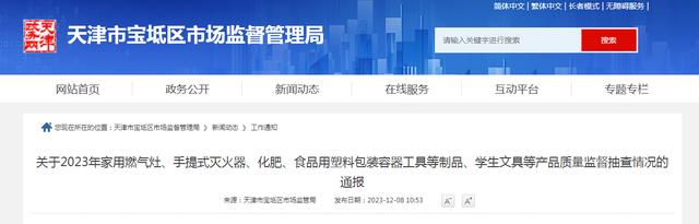 2023年,寶坻區(qū)市場監(jiān)管局開展了家用燃氣灶、手提式滅火器、化肥、食品用塑料包裝容器工具等制品、學生文具等產(chǎn)品質(zhì)量監(jiān)督抽查。共抽查產(chǎn)品100批次,不合格10批次,不合格發(fā)現(xiàn)率10%。
