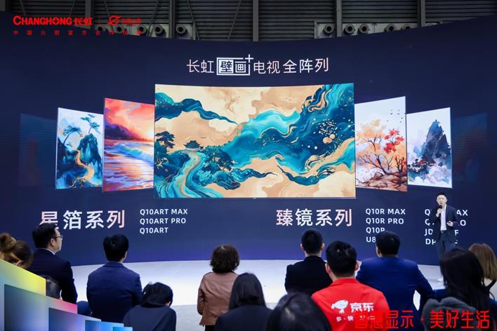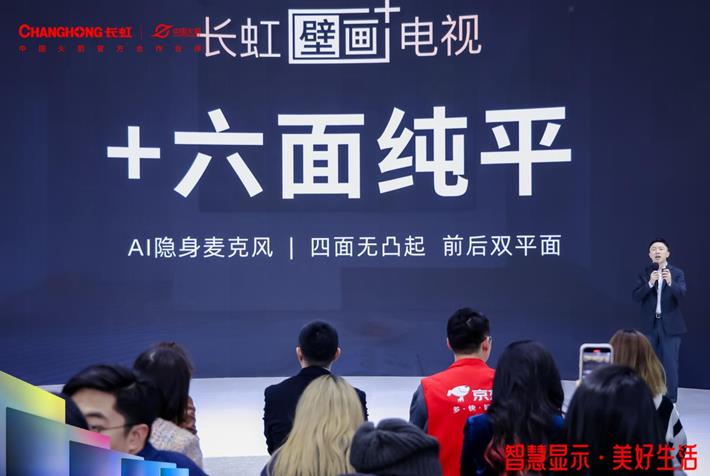 在今天的發(fā)布會上,新一代壁畫電視隆重登場。它是長虹憑借自身52年精工品質、聯(lián)合中國火箭,以獨一無二的領先科技打造的「長虹壁畫+電視」,為用戶帶來更美更可靠的使用體驗——所謂“+”,是“+”六面純平帶來的壁畫新高度,是“+”優(yōu)秀散熱帶來的極致可靠,是“+”AI云帆帶來的好玩好用,是“+”現(xiàn)場級影像帶來的沉浸觀影。