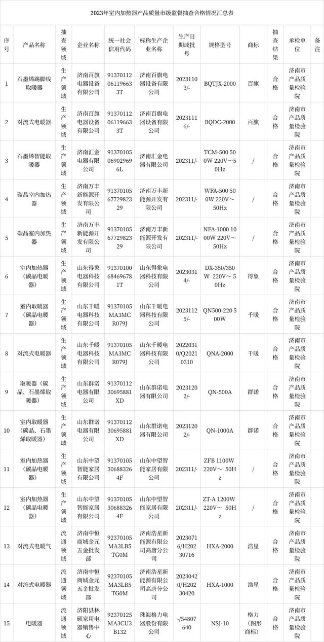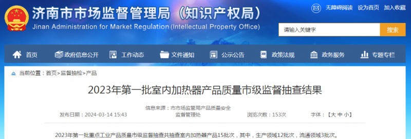 【濟南】2023年第一批室內(nèi)加熱器產(chǎn)品質(zhì)量市級監(jiān)督抽查結果