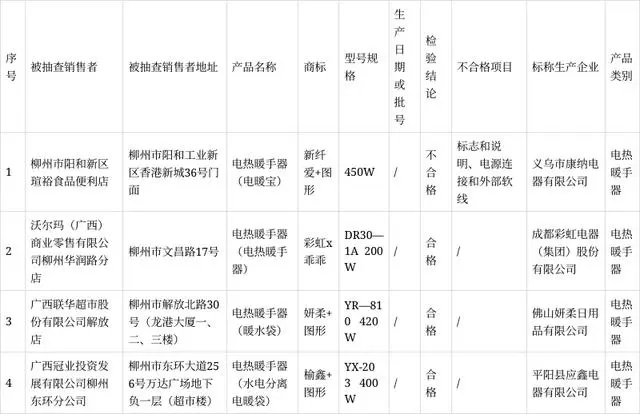 廣西柳州市市場(chǎng)監(jiān)督管理局通報(bào)4批次電熱暖手袋產(chǎn)品監(jiān)督抽查情況