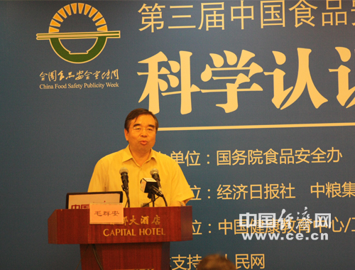 健康教育專(zhuān)家毛群安主任在第三屆食品安全論壇上發(fā)言 中國(guó)經(jīng)濟(jì)網(wǎng)馬瀚明 攝