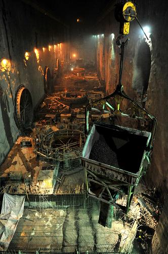 正在建設(shè)中的三峽工程地下電站內(nèi)景(2009年3月26日攝)。目前,三峽工程的樞紐和輸變電工程已基本完工,運(yùn)行平穩(wěn),綜合效益日益顯現(xiàn)。2009年6月30日,三峽電站26臺機(jī)組首次實(shí)現(xiàn)全部同時(shí)并網(wǎng)發(fā)電。