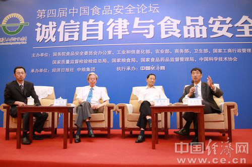 6月11日至17日被確定為今年的全國食品安全宣傳周。宣傳周主題為“共建誠信家園 同鑄食品安全”。全國食品安全宣傳周啟動儀式由國務院食品安全委員會辦公室、工業(yè)和信息化部、農(nóng)業(yè)部、商務部、衛(wèi)生部、國家工商總局、國家質(zhì)檢總局、國家糧食局、國家食品藥品監(jiān)管局、中國科協(xié)共同主辦,經(jīng)濟日報社、中糧集團承辦,中國經(jīng)濟網(wǎng)執(zhí)行承辦。圖為對話環(huán)節(jié) 李凡攝