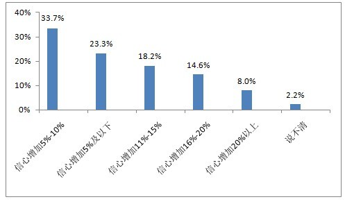 在認為未來一年食品安全狀況會改善的市民中,信心增加程度為5%~10%的市民人數最多,占到了33.7%,其次是信心增加程度低于5%的市民,有23.3%。
