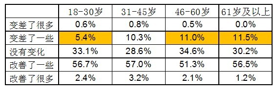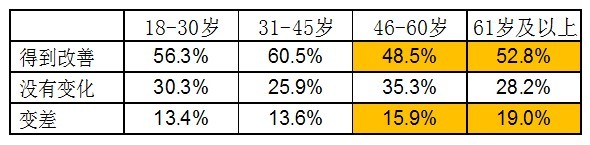 解讀一:過(guò)去一年,46-60歲的市民對(duì)食品安全狀況的改善評(píng)價(jià)較低
