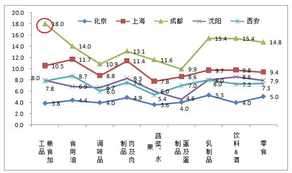 解讀四:成都的食品安全信心指數(shù)增長最快,其次是上海,最差的是北京
