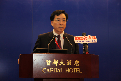 由中國(guó)道路交通安全協(xié)會(huì)、中國(guó)汽車技術(shù)研究中心和中國(guó)經(jīng)濟(jì)網(wǎng)共同主辦的“2013中國(guó)道路交通安全論壇”于8月29日在北京首都大酒店舉行。圖為開幕式主持人中國(guó)道路交通安全協(xié)會(huì)常務(wù)副理事長(zhǎng)樊漢國(guó)。中國(guó)經(jīng)濟(jì)網(wǎng) 裴小閣 攝影